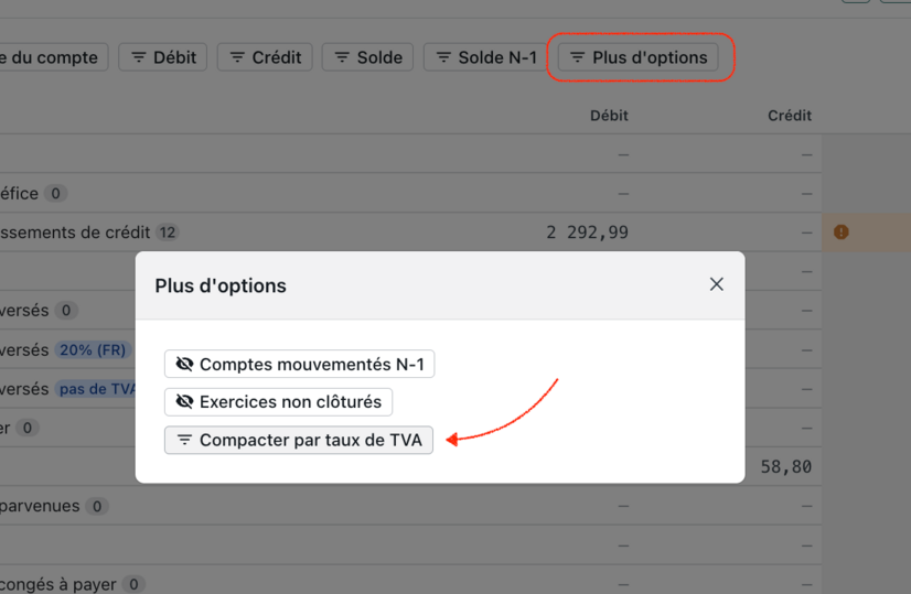 Il s’agit simplement d’un affichage de la balance qui vous permet de visualiser le détail des comptes par taux de TVA. C’est notamment très utile au moment de faire votre déclaration de TVA, pour consulter les montants concernés par chaque taux.