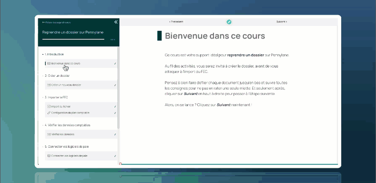 C’est pourquoi nous avons imaginé un guide interactif qui vous permet de suivre étape par étape le parcours de reprise de dossier sur Pennylane. Que vous soyez un novice ou un expert, il vous fournit des conseils pratiques et des astuces utiles pour gagner du temps dans la reprise des données, et surtout, surtout : éviter les erreurs d’import. Il peut aussi devenir votre mémento pour ne rien oublier au moment d’une reprise sur Pennylane.