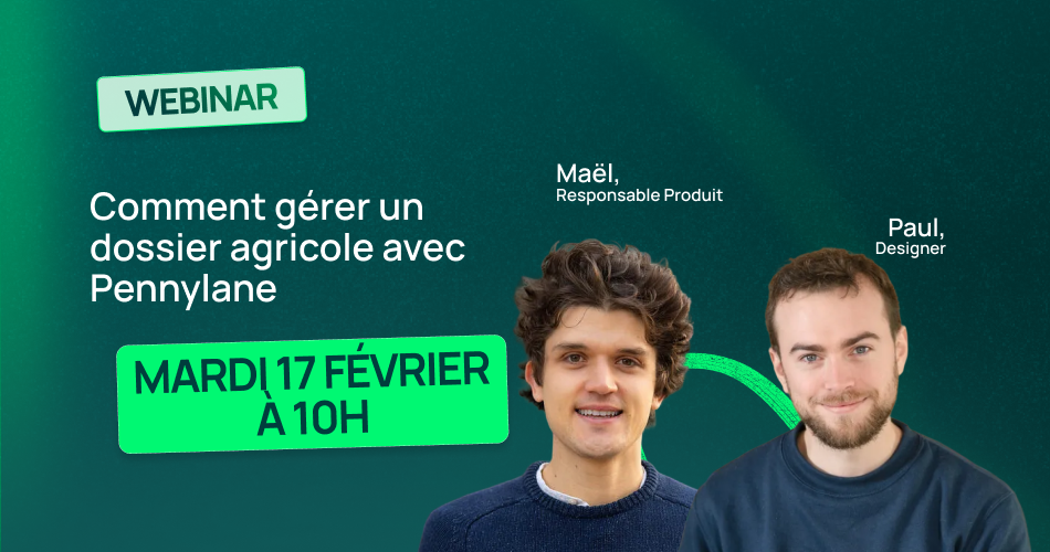 Pour voir comment migrer, configurer et gérer un dossier agricole avec Pennylane, rejoignez-nous mardi 17 février de 10 h à 10 h 45. Nous ferons le tour de toutes les fonctionnalités agricoles à votre disposition.