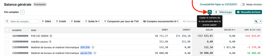 L’astuce de survie de notre aventurier : “Copiez-collez les lignes de votre balance dans un fichier excel pour faciliter votre révision !” Vous vous aventurez trop souvent dans les tréfonds de Pennylane pour récupérer votre info sur Excel. Mais pas le temps pour une escale : désormais, après avoir filtré votre balance comme vous le souhaitez, cliquez simplement sur cette icône pour copier-coller proprement toutes les lignes dans votre fichier excel.