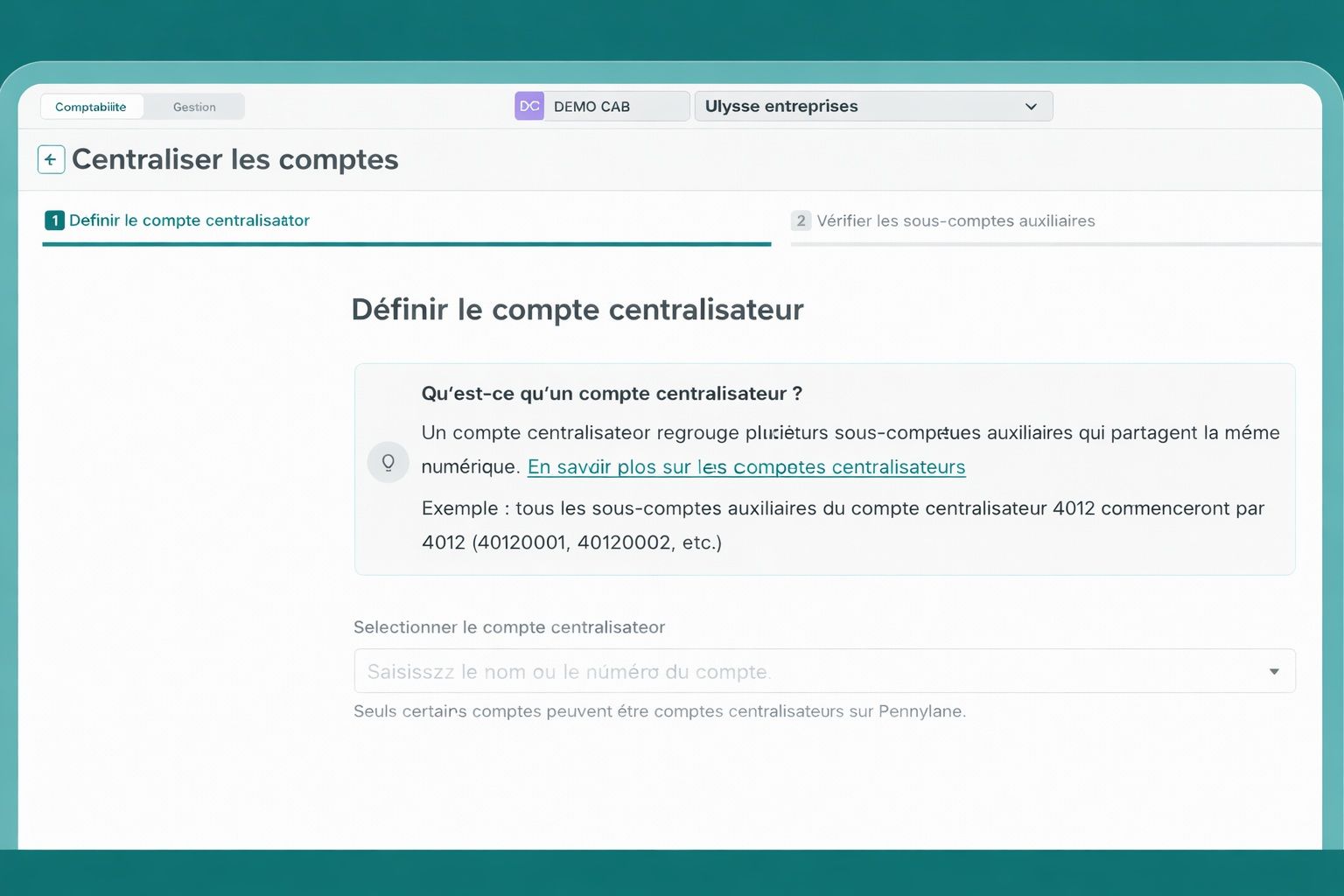 Désormais, vous pouvez définir des comptes centralisateurs. Le principe est simple : vous choisissez un compte pivot (ex: 401001) et le système y rattache automatiquement tous les sous-comptes partageant la même racine (401001001, 401001002...).