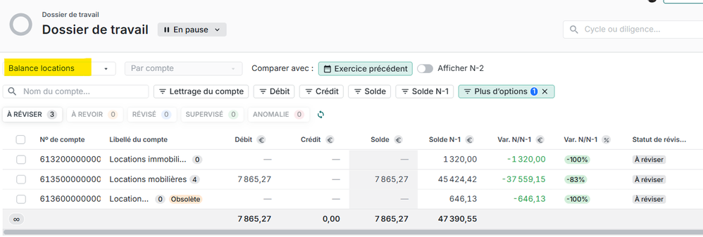 Bonjour, merci pour ta réponse. Dans le dossier de manière générale j'ai bien effectivement une "Autre balance auxiliaire", mais je ne retrouve pas cette vue dans le dossier de travail, ce qui fait que je ne peux pas valider ou commenter chaque compte individuellement, je ne vois que le compte auxiliaire 6132