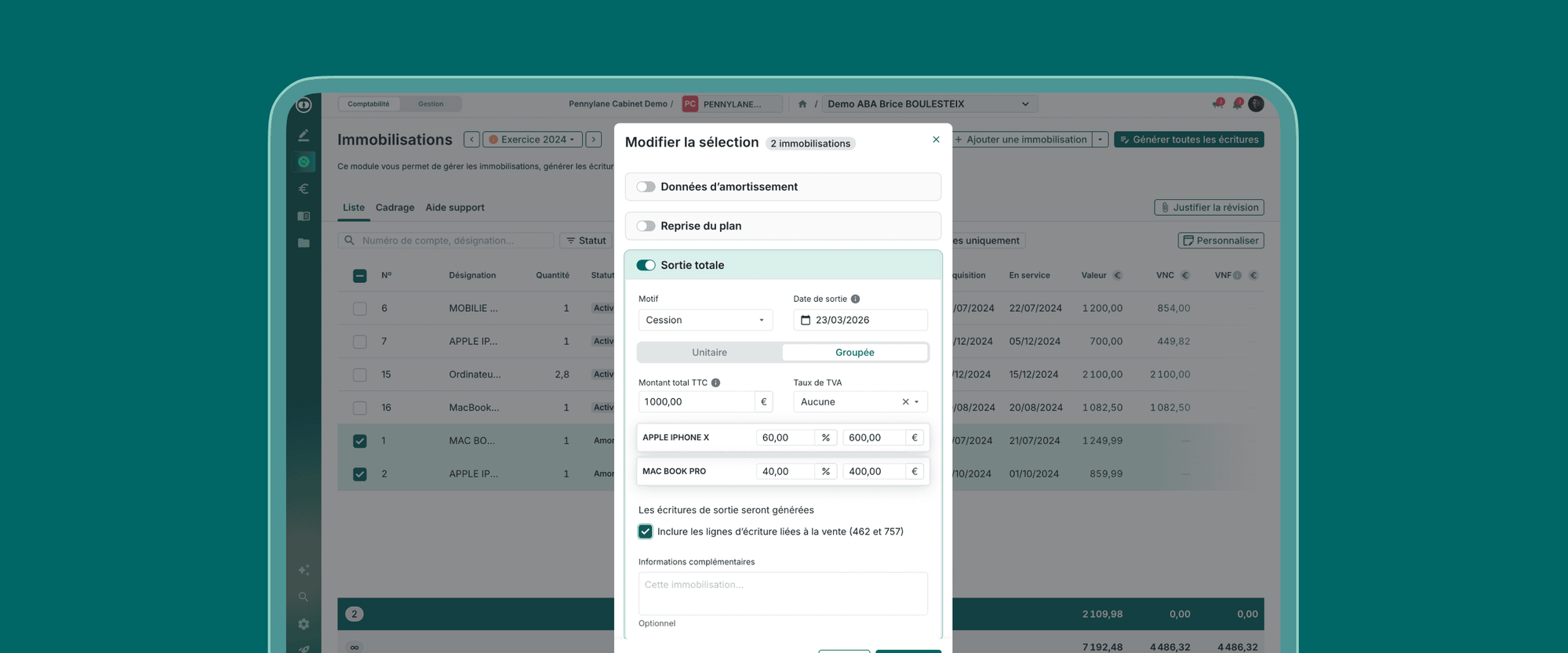 Les améliorations des sorties d’immobilisation sont disponibles depuis le 12 novembre 2025 pour les cabinets d’expertise comptable et les comptables internes.