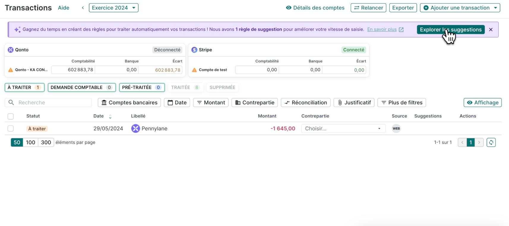 Simplifiez la saisie de vos transactions grâce aux suggestions de règles de transactions.