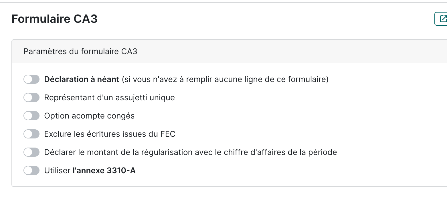 Activez cette option depuis les Paramètres du formulaire CA3 en cochant Option acompte congés.