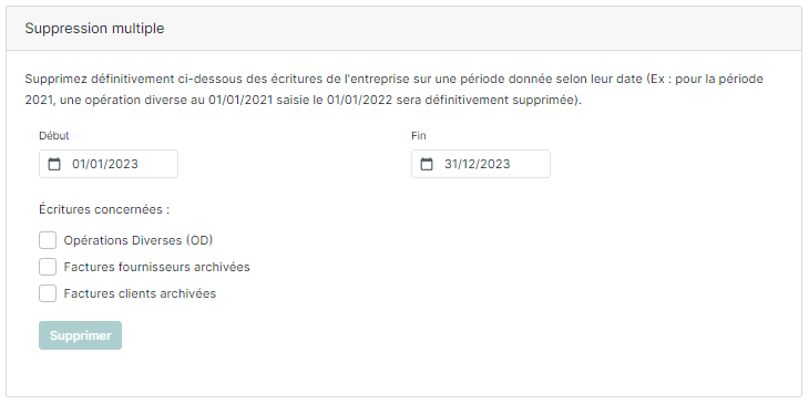 À ce niveau-là, vous aurez plusieurs options, dont celle de supprimer les données du dossier pour une période renseignée :