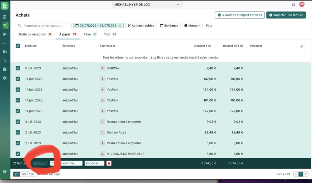 Merci mais rien n’y fait car le bouton “Payer” ne s’éclaircit pas (entouré en rouge) .. que pensez vous quelle en serait la raison ? Voir capture d’écran ci après .. et mon compte Qonto a bien été raccordé avec l’interface …