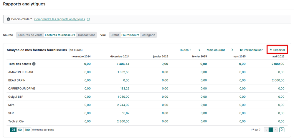 Ainsi, vous pourrez exporter la liste des dépenses par fournisseur 😊
