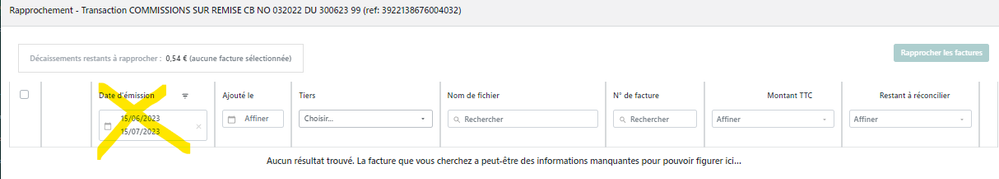 Régulièrement j'ai des montants de débits bancaires qui apparaissent comme "injustifiés" alors qu'une facture a été déposée mais le Logiciel ne me propose pas de rapprochement et je ne la retrouve pas quand je fais "chercher dans Pennylane".