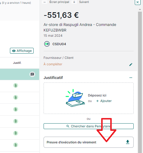 Vous verrez alors dans le volet qui s’ouvre à droite une zone intitulée “Preuve d’exécution du virement”. En cliquant dessus, vous téléchargez un justificatif de votre virement en pdf 💻, que vous pourrez ensuite facilement envoyer à votre fournisseur par email. 👍 - Anthony_Grand_2