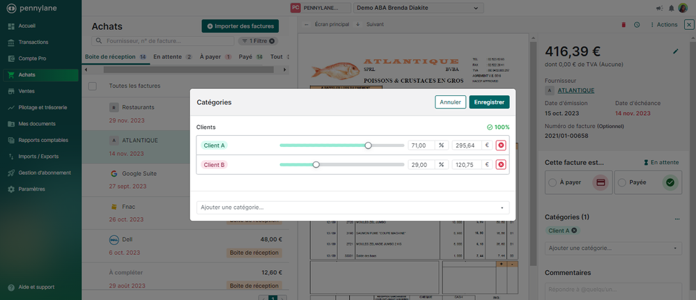 Comment puis-je imputer des achats pour différents clients sur une meme facture fournisseur, me permettant d’avoir une renta précise par client ?