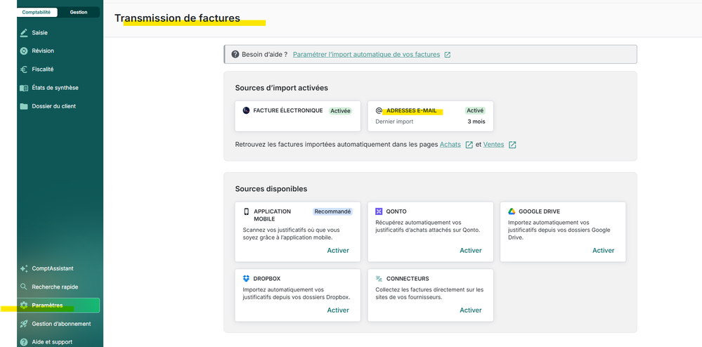 Si vous allez dans paramètres/transmission de factures/sources disponibles