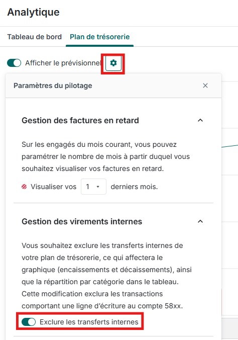 Vous avez la possibilité de les exclure du Plan de trésorerie en cliquant sur la petite roue crantée > Exclure les transferts internes 😊