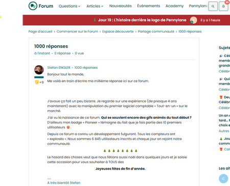 Félicitations @Stefan ENGLER pour votre millième réponse sur notre Forum ! Nous sommes ravis de vous compter parmi nos super utilisateurs. Votre engagement et vos contributions sont inestimables pour la communauté Pennylane.