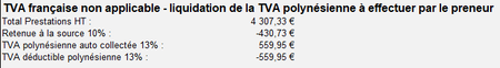 TVA polynésienne auto collectée 13% : 559,95