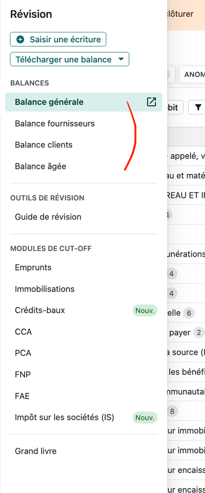 Comme vous pourrez le voir dans le tutoriel sur la balance, sur votre onglet Révision vous trouvez la balance générale et de tiers ainsi que le grand-livre.