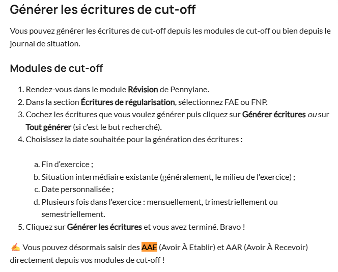 Il n'y a pas de module à part pour les AAE, car ceux-ci peuvent être directement saisis au niveau des modules de cut-off existants :