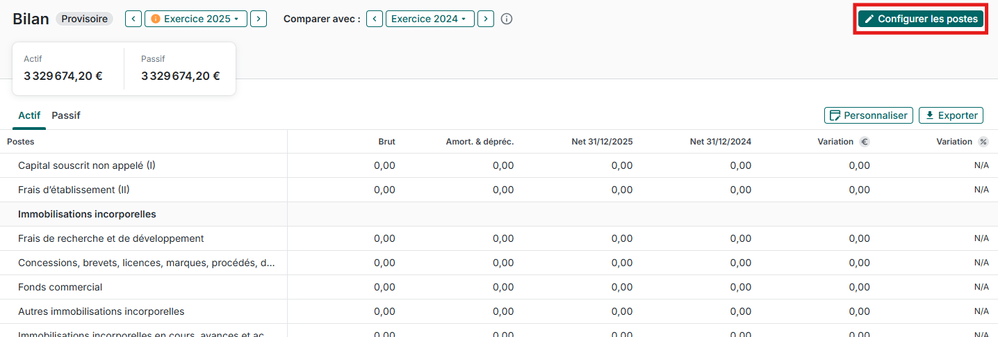 Depuis le menu Etats de synthèse > Bilan vous avez la possibilité de cliquer sur Configurer les postes afin de procéder à ce réajustement 😊