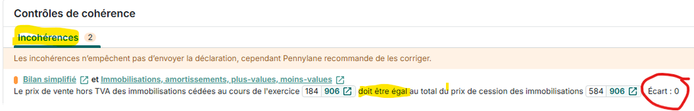 le logiciel m'affiche une incohérence avec un écart de "0".