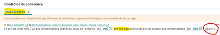 Bonjour, le logiciel m'affiche une incohérence avec un écart de "0". Pour quelle raison j'ai ce message ? Mon hypothèse : Il doit avoir un léger écart au niveau des centimes n'est-ce pas ?