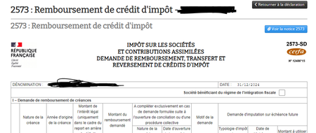 Bonjour, Je souhaite faire une demande de remboursement de CIR. Mais quand je vais dans les autres déclarations fiscales, et que je choisis la 2573, je ne peux pas choisir la période concernée...