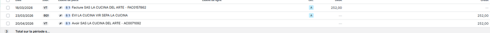 En mars 2026 : une facture est générée dans le compte client et nous voyons également le paiement. - Lettrage automatique