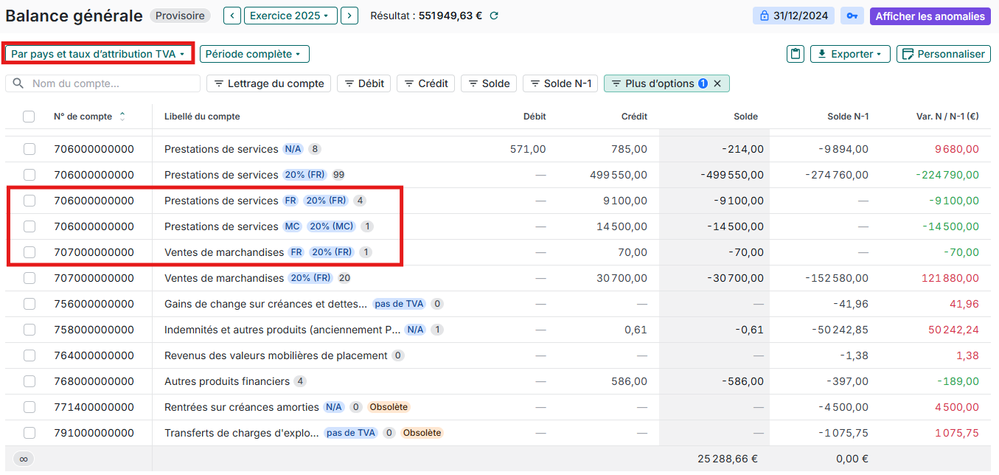 En effet, les tags TVA avec Monaco n'apparaissent pas au niveau des comptes de TVA collectée.