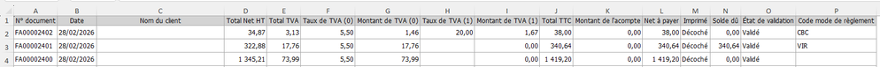 - Sélectionner les colonnes de montants (HT, TVA, TTC…)