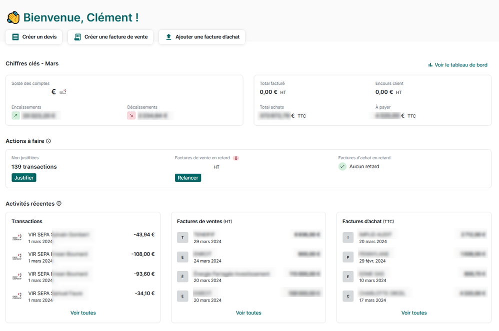 [Gestion] Intégration du statut de synchronisation bancaire à la page d'accueil