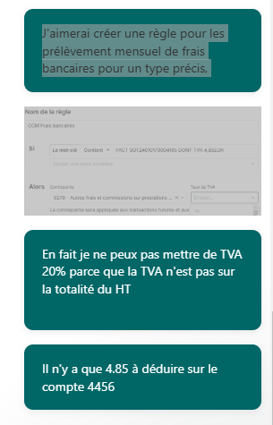 il y a 11 moisCréer une règle pour les frais bancaires dont une partie seulement est soumis à la TVA