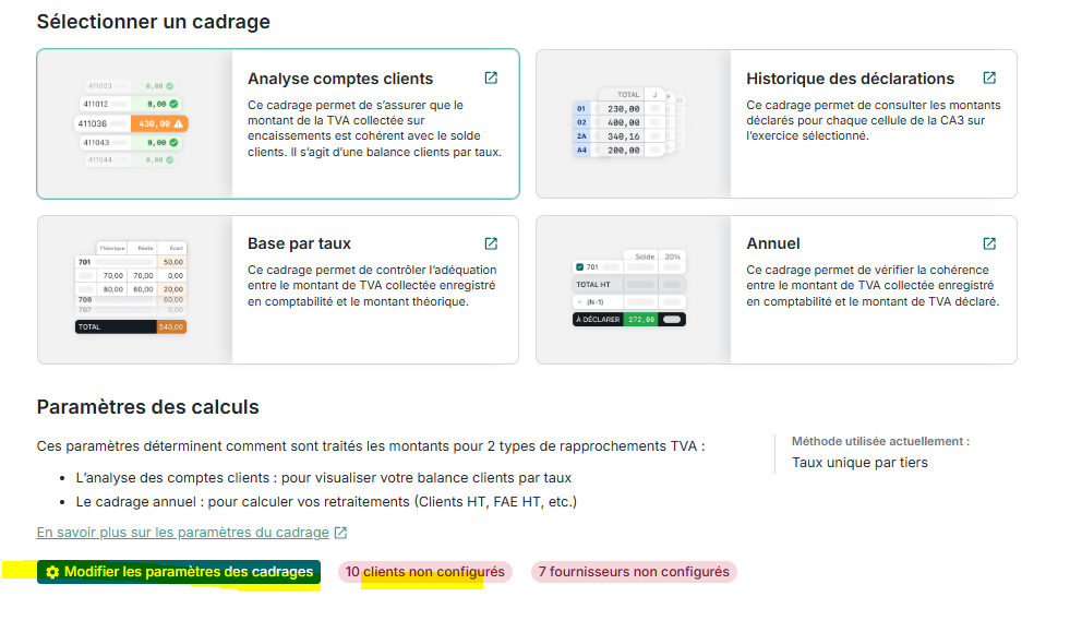 Ensuite, concernant les cadrages de TVA, la modification des paramètres des cadrages permet simplement de changer la façon dont la TVA théorique est calculée : soit de manière granulaire, soit avec un taux unique.