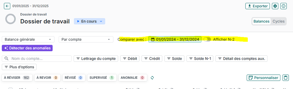 Est-ce possible de demander une évolution sur la date de comparaison sélectionnée dans la révision par la balance :