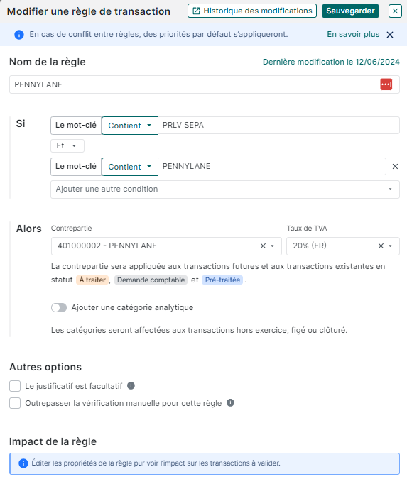 Il me semble que cela se fait dans le centre de règles des transactions.