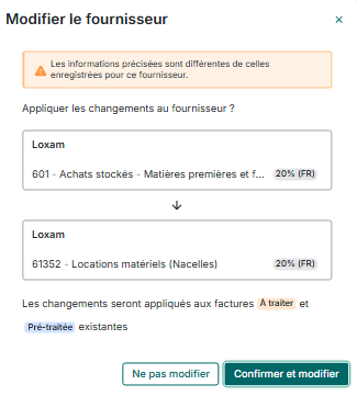 Lorsque je saisie une facture et que je renseigne une contrepartie (compte de charge), il m'est proposé lors de la validation de la facture de "Confirmer et modifier" la fiche du tiers afin que ce compte soit rattaché au tiers pour les autres factures importées de ce dernier.
