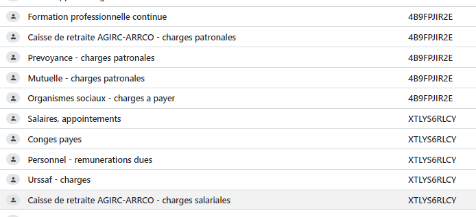 Alors je vois par exemple dans mon journal de Paie (import PayFit) pour octobre et novembre ces 2 numéros d’écritures qui se suivent :