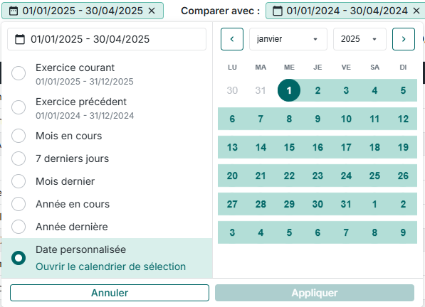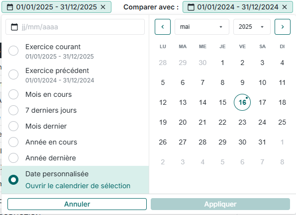 et quand je reviens sur la page le système me propose toute l'année 2025 + 2024.