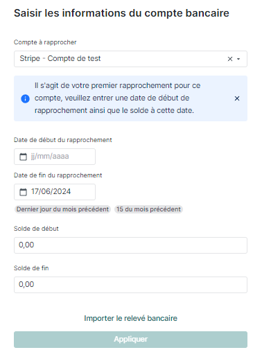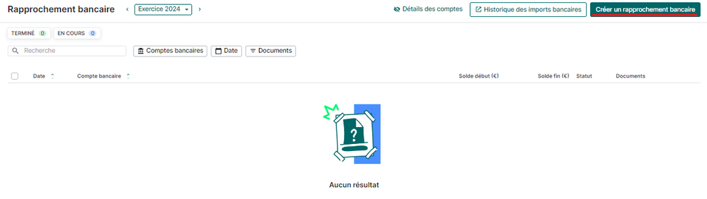 De là, vous pourrez créer un nouveau rapprochement bancaire, en cliquant sur Créer un rapprochement bancaire :