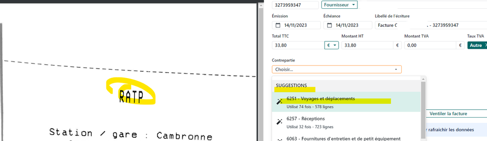 Le logiciel apprends avec le temps dans le module “transactions” (vue cabinet)