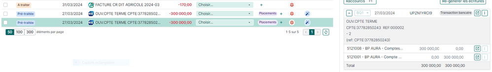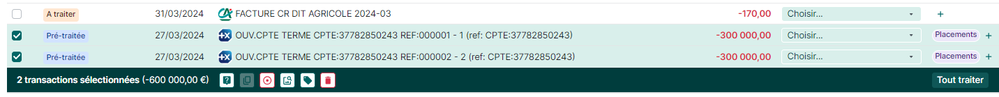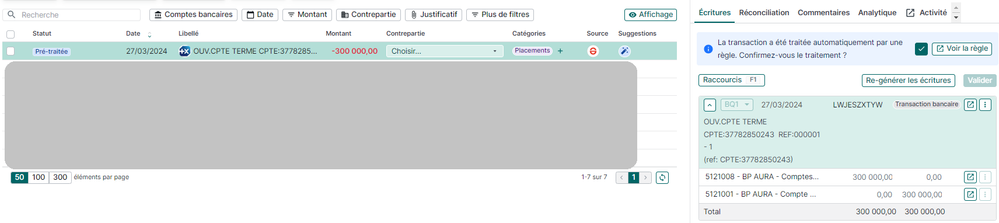 Mais dans le cas où il s’agit de placer les liquidités d’un compte courant vers un compte à terme ou un dépôt à terme sans changer de banque, il n’y a qu’une seule transaction et nous avons une unique règle 512 vers 512. Ainsi avec cette seul règle, nous n’avons plus rien à faire.