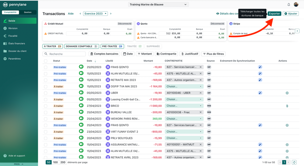 C’est possible en cliquant sur le bouton Exporter depuis la page Transactions.