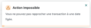 Bonjour, je souhaite rapprocher une transaction, habituellement ça fonctionne mais cette fois ça m’ouvre une pop up en me disant “Action impossible”. Voici en capture la pop up affichée. Merci pour...