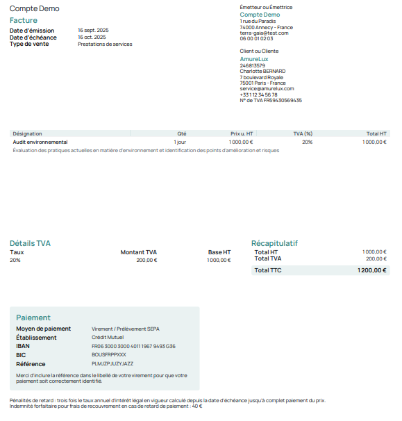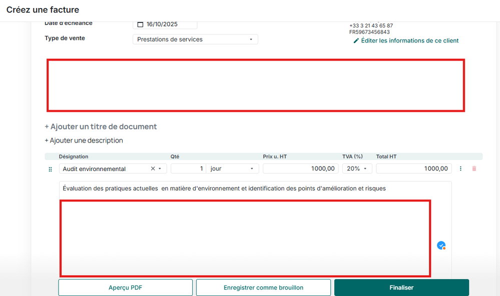 Serait-il possible d'aérer la facture lorsque peu de champs (actuellement tout est concentré sur 1/2 page) ?