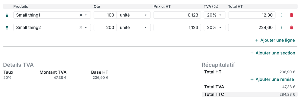 Avoir 3 chiffres après la virgule dans le détail des factures/devis