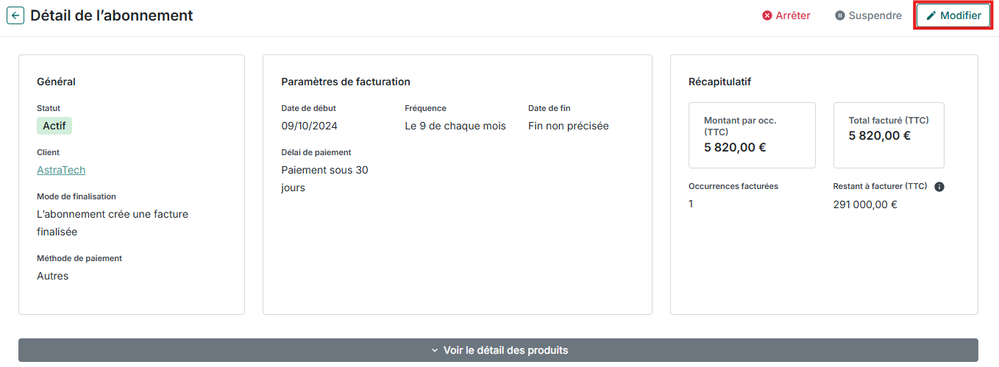 Pour cela, je vous invite à revenir dans le menu Ventes > Abonnements et à cliquer sur l'abonnement en question.