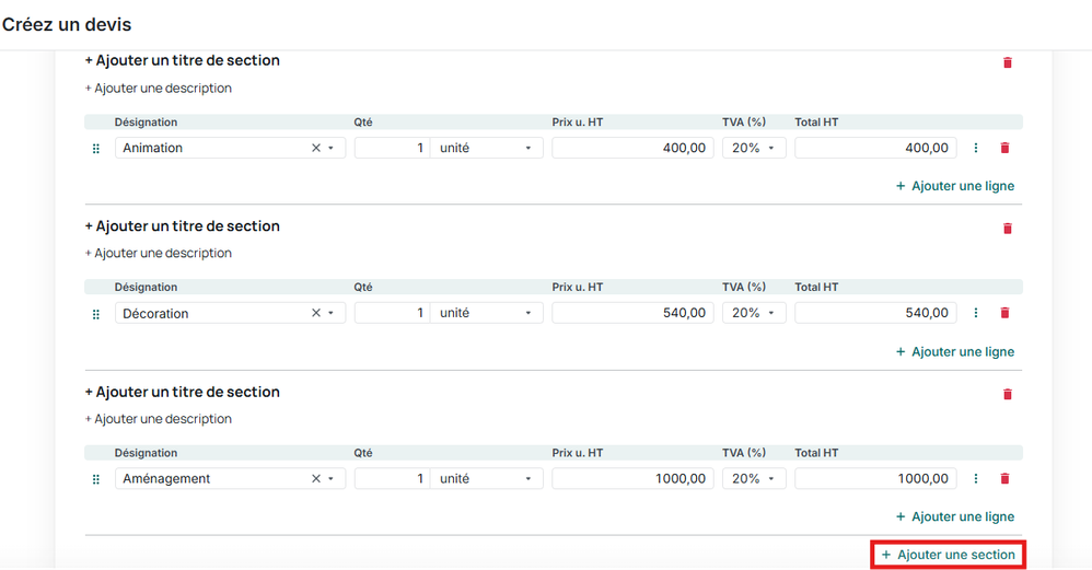 Si oui, vous pouvez le faire en ajouter des sections à votre devis 😊