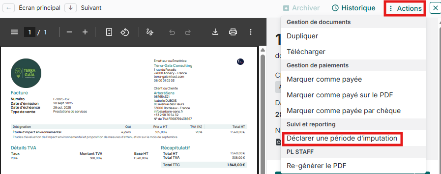Vous pouvez l'indiquer en ajoutant une période d'imputation au niveau de votre facture 😊