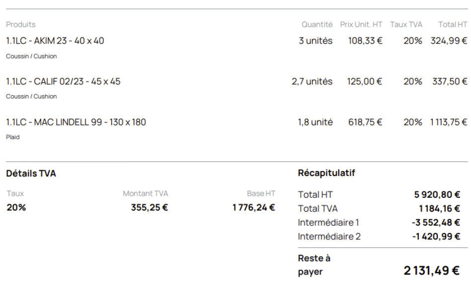 Cependant, la facture de solde traduit les quantités vendues en% pour parvenir au solde à facturer.