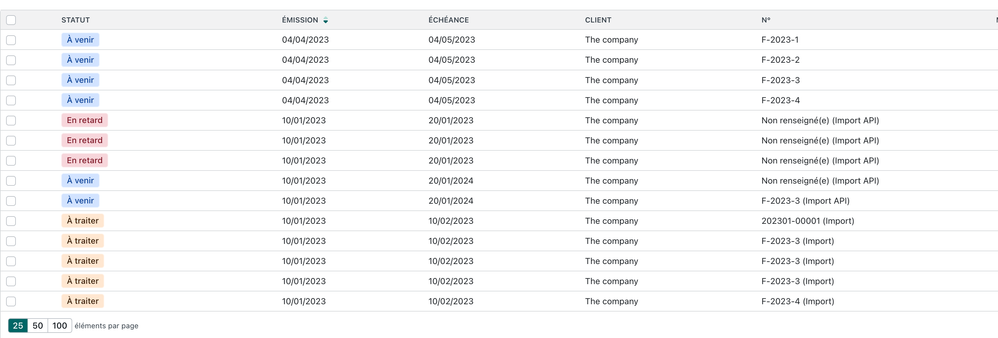 - j'essaie d'importer via api une facture, cette fois ci en indiquant le numéro de facture lors de l'api api : F-2023-2 => l'api me refuse car le numéro existe déjà [très bien !]