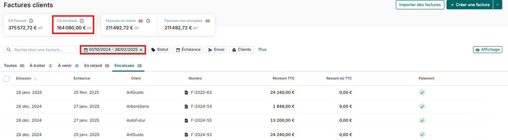 Vous pourrez ainsi visualiser votre CA encaissé 😊