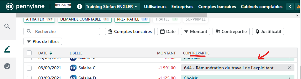 Si vous utilisez la vue “cabinet” vous pouvez (dans Transactions) sélectionner le compte 644 dans la colonne “contrepartie
